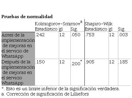 Por el número de datos, se trabajó con la prueba de normalidad Shapiro-Wilk, tal como se visualiza en la Tabla 1.