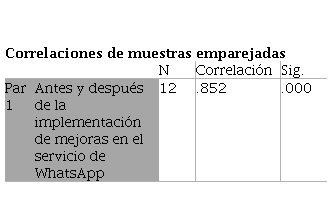 El valor de significancia obtenido fue 0.00; por lo tanto, se rechaza H0 y se acepta H1, pues las mejoras del servicio de WhatsApp incrementaron el nivel de satisfacción, lo que se refleja en el NPS.