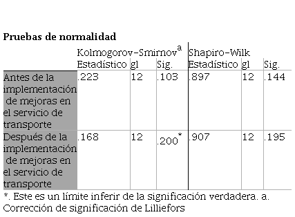 En la tabla anterior se pueden observar los valores obtenidos antes y después de la implementación de mejoras, por lo que se utilizó una prueba paramétrica.