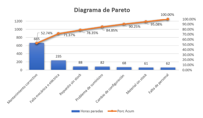En la fase analizar, se elaboró un diagrama de Pareto con la finalidad de identificar problemas clave, priorizar acciones y, finalmente, enfocarse en las causas raíz. Este diagrama se presenta en la Figura 4.