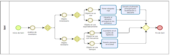 En la etapa de clasificación (seiri), se llevó a cabo una reunión con los trabajadores del Área de Tejeduría, durante la cual se les proporcionó una explicación detallada de las tareas que debían realizar en esta actividad mediante el flujograma que se presenta en la Figura 6.