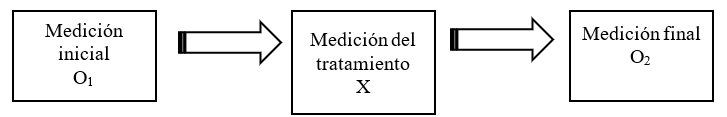 Nota. La figura representa las mediciones que forman parte del diseño de investigación utilizado para el presente trabajo.