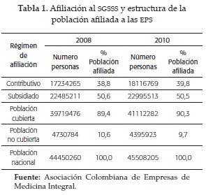 El SGSSS está conformado por dos regímenes: el Subsidiado, a través del cual el Estado colombiano por medio del Fosyga aporta los recursos para las personas más necesitadas; el Régimen Contributivo es el sistema de salud mediante el cual todas las personas vinculadas a través de contrato de trabajo, los servidores públicos, los pensionados y jubilados y los trabajadores independientes con capacidad de pago hacen un aporte mensual (cotización) al sistema de salud pagando directamente a las EPS lo correspondiente según la ley, para que a su vez estas contraten los servicios de salud con las IPS o les presten directamente a todas y cada una de las personas afiliadas y sus beneficiarios. La responsabilidad de la afiliación del empleado es del empleador y la del pensionado es del Fondo de Pensiones (3).