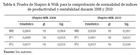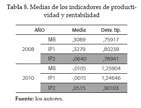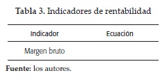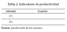 En las tablas 2 y 3 se muestran los indicadores de productividad y rentabilidad utilizados para esta investigación.