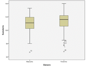 Además, no se encontraron diferencias estadísticas cuando se evaluó la interacción entre género y curso. Resultados similares se reportaron en el estudio realizado con estudiantes de Kinesiología en Chile 32.