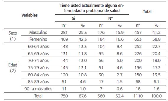 Sobre la Situación de la Población Adulta Mayor, en Chile y Bolivia reportaron que el 70,2 %-82,0 %, 80 % y 62 % de la población adulta mayor presentó algún problema de salud crónico, que aumenta con la edad y más frecuente en las mujeres 25-28.