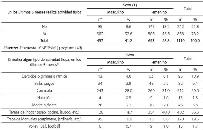 El haber encontrado que la mayoría practica actividad física, ya sea adecuada o poco adecuada, nos indica que estamos ante un factor salutogénico. Sin embargo, la actividad física como indicador de salud está disminuyendo a nivel mundial en todas las edades, y los niveles de actividad física son menores entre mujeres que en hombres, y en la vejez en ambos sexos, lo cual aumenta los riesgos de mortalidad, enfermedad y discapacidad 2.