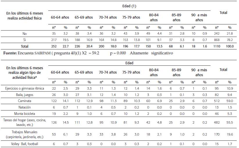 Conclusions: The most important problems are evidenced by inadequate physical activity, risk / malanutrition, poor coverage of vaccines and detection of breast, cervical, and prostate cancer. Arterial hypertension, arthritis and diabetes mellitus poorly controlled with significant presence of polypharmacy and non-possession of health insurance.