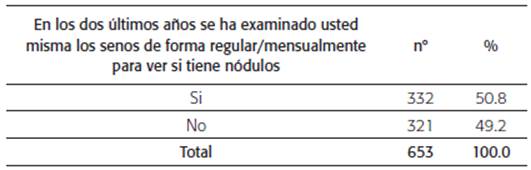 Según la encuesta Salud, Bienestar y Envejecimiento (SABE), en lo referente a la auto exploración y exploración por el personal de salud de las glándulas mamarias en las adultas mayores, e observa una tendencia lineal descendente a medida que avanza la edad. Esta misma tendencia se observa en la realización del examen de Papanicolaou, y en los varones, el examen de próstata 24.