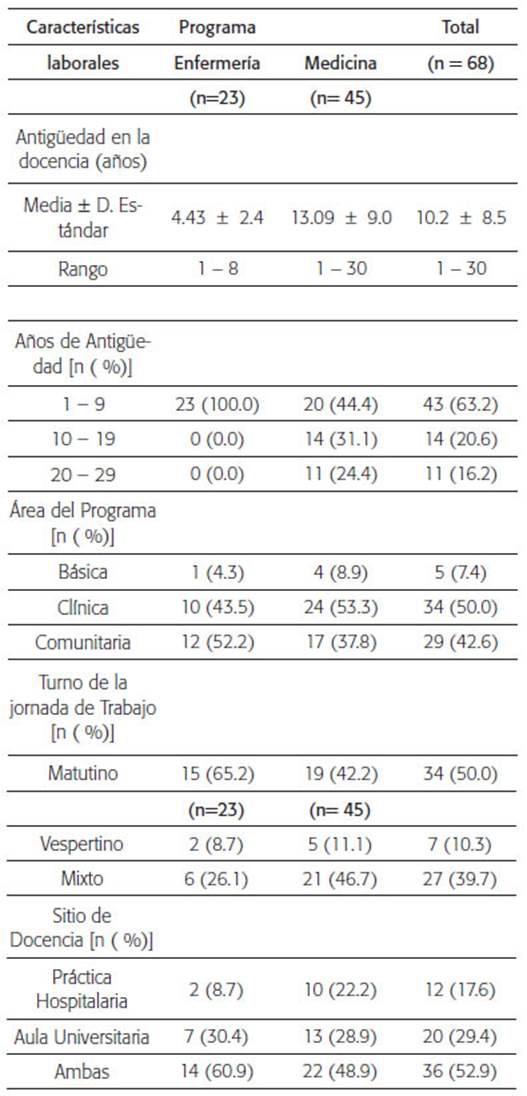 Materials and methods: This study was conducted with a quantitative design non-experimental, cross-sectional, analytical and explanatory. They participated 68 university teachers, doctors and nurses with at least one year of seniority.