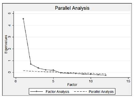 Para proceder con el AFC, inicialmente se verificó la normalidad multivariada empleando el Test de Mardia. Aunque no se encontró normalidad multivariada, el AFC es robusto a este tipo de supuestos cuando se tienen tamaños de muestra amplios (>200) y no existe normalidad multivariada 26. El AFC se realizó para confirmar la estructura de factores previamente estimada en el AFE y así la validez de constructo a través de Mínimos Cuadrados Parciales con Media y Varianza Ajustada: MCPMVA.