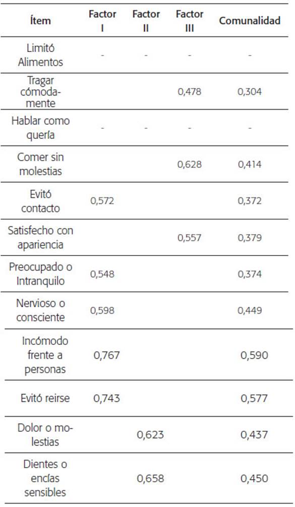 Otro estudio que indagó por las propiedades psicométricas del GOHAI -versión persa-, reveló que su estructura de tres factores es la mejor solución. No obstante, en ese estudio la constitución de factores no siguió la distribución de ítems de acuerdo con los 3 factores inicialmente hipotetizada, lo cual es consistente con los hallazgos de esta investigación y muestra la inestabilidad del constructo 38.