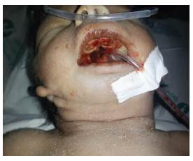 Al examen físico se evidenció ausencia de pabellón auricular bilateral, apéndices cutáneos en mejillas, paladar hendido completo, glosoptosis, micrognatia, coanas no permeables, cuello corto (figuras 1 y 2). Se auscultó soplo sistólico grado II/VI con bradicardia. Se evidenció ano imperforado, rafe perineal prominente (figura 3); mesomelia en extremidades superiores y agenesia de pulgares (figura 4). Estudio de imágenes mostraron infiltrado de tipo vidrio esmerilado en ambos campos pulmonares, cardiomegalia global, intestino dilatado con aumento de contenido gaseoso, curva escoliótica lumbar de convexidad izquierda, dos hemivértebras en L2 y L5, ausencia bilateral de radios y pulgares (figura 5), y agenesia de riñón izquierdo. Estudio citogenético mostró un cariotipo 46, XY normal. No fue posible la realización de estudios moleculares, sin embargo, con base en los hallazgos clínicos se clasifica como un síndrome de Townes-Brocks.