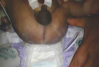 La anomalía anal más comúnmente reportada es el ano imperforado, el cual varía desde un orificio cubierto por piel hasta grados de mayor severidad. Usualmente se encuentran fistulas recto-vaginales o rectouretrales, estenosis anal, exceso de piel perianal, estreñimiento crónico y reflujo gastroesofágico 15,27. Igualmente, se han descrito múltiples anomalías genitourinarias, como la displasia o hipoplasia de riñón uni- o bilateral, agenesia renal, riñones poliquísticos, valvas uretrales posteriores, reflujo vesicoureteral y estenosis meatal. Así mismo, se puede presentar falla renal, rafe perineal prominente, escroto bífido, criptorquidia, hipospadias y aplasia vaginal con útero bífido 15,28. Además del ano imperforado, el rafe perineal prominente y la agenesia renal unilateral del paciente no fue posible descartar otras anomalías genitourinarias por medio de estudios complementarios debido al fallecimiento temprano del mismo.