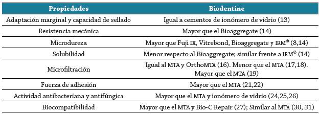 Este artículo de revisión tiene como objetivo proporcionar un análisis detallado de las propiedades fisicoquímicas, biológicas y las principales aplicaciones clínicas de la biodentine.