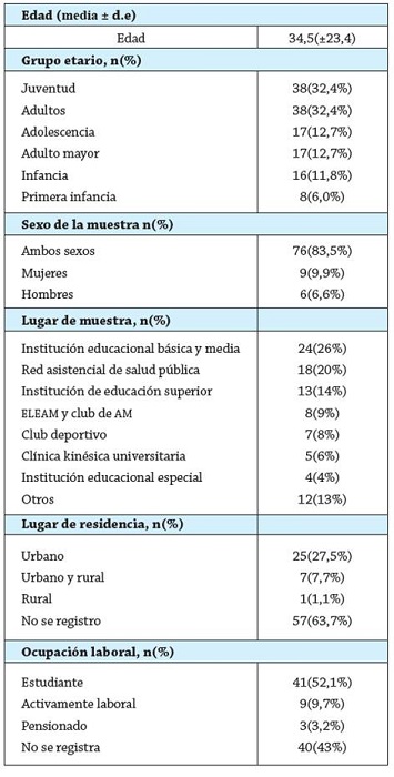 Los sujetos de estudio principalmente eran jóvenes y adultos pertenecientes a centros educativos de enseñanza básica, media o usuarios de la red de atención de salud pública que presentaban algún diagnóstico médico de enfermedad cardiometabólica.