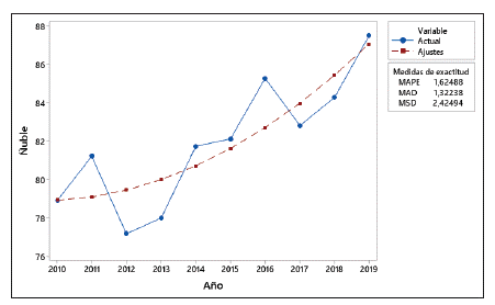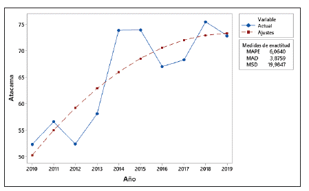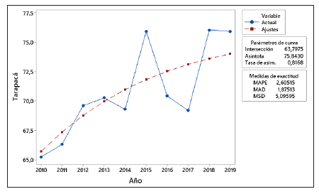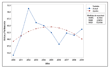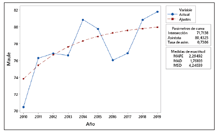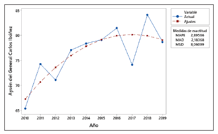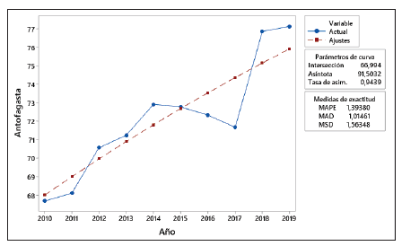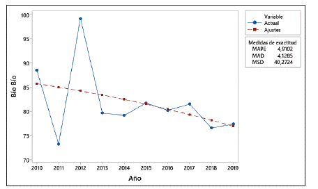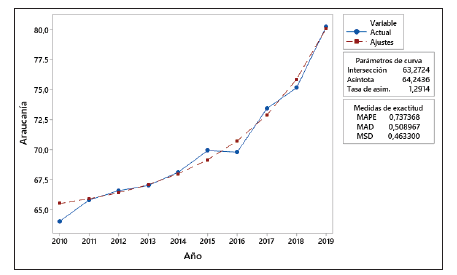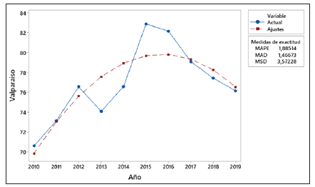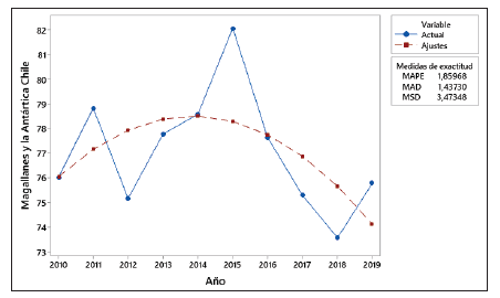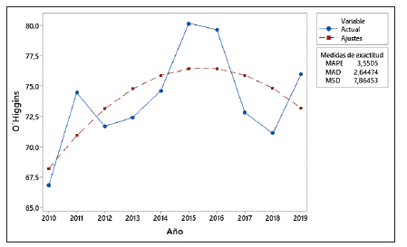 Uno de los aspectos trascendentales en epidemiología es intentar la predicción; esto se realiza habitualmente mediante modelos que consideran el progreso de situaciones en el tiempo en cierto lugar 17. En este caso, la aproximación a la interpretación de la realidad por medio de modelos matemáticos se vio especialmente afectado por la cantidad de años estudiados. No se incluyó el año 2020 debido al estadillo social ocurrido en Chile, seguido de la pandemia por COVID-19. Por tanto, lo antes expuesto puede considerarse una limitación de este estudio