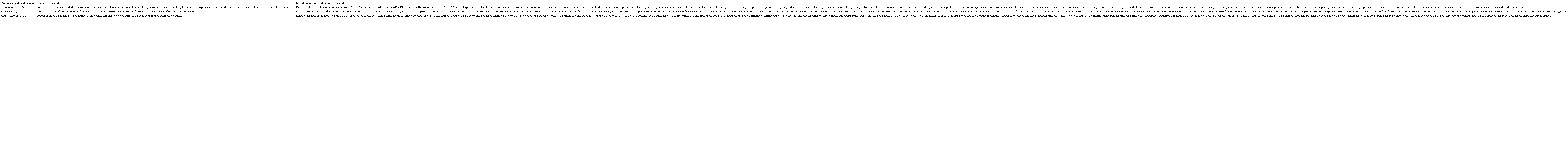 Criterios de exclusión de los estudios: Se excluyeron los estudios de tipo descriptivo transversal sin análisis de la variable integración sensorial y de la estimulación multisensorial en la población de niños y jóvenes con autismo.