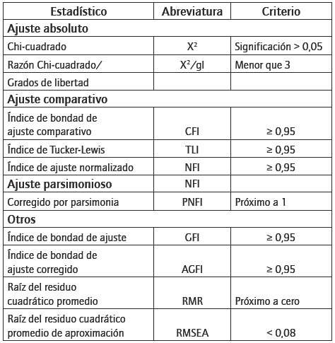 Para determinar la validación del modelo estructural se realizaron las siguientes pruebas estadísticas (Johnson et al., 2006):