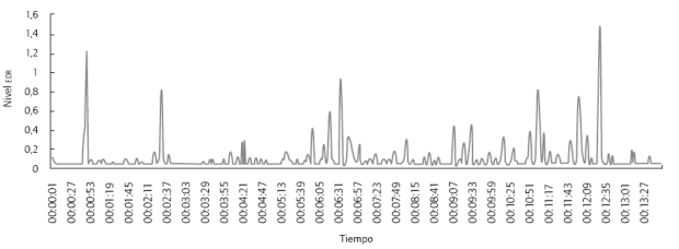 En ese contexto, resulta significativo señalar que, en el caso de incrementos notorios de EDL, se puede observar, en todos los casos, un iniciador sonoro común: sonido fuerte, súbito, posiblemente inesperado y de registro muy distinto al sonido previo.