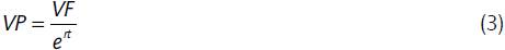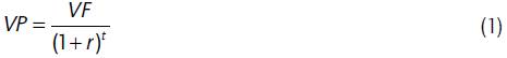 La relación entre la tasa de interés (r) y la tasa de descuento intertemporal (θ) es VF = VP (1 + r)t, donde VF es el valor futuro del activo, VP es el valor presente, r es la tasa de interés y t es el período. De allí se sigue que el valor presente neto (VPN) es: