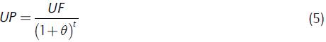Donde UF es la utilidad futura, UP es la utilidad presente, r es la tasa de interés y t es el periodo. De allí se sigue que la utilidad presente neta (UPN) es: