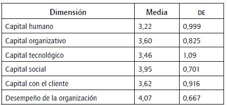 Por otra parte, en el estudio sobre las pymes del centro del estado de Tamaulipas (De la Garza, Zerón, & Sánchez, 2015), el capital estructural fue la dimensión mejor evaluada en contraposición con el componente tecnológico como el menos valorado. Además, el capital relacional no fue aplicado de manera eficiente en las organizaciones y el capital humano se focalizó solo en ciertos componentes, como la promoción de los valores organizacionales.
