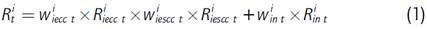 Donde Rit= Retorno real en pesos chilenos asociado al multifondo i del sistema de AFP en el mes t, que por construcción incorpora el efecto de la cobertura cambiaria en aquella porción relacionada con inversiones extranjeras cubiertas frente al riesgo cambiario; t = septiembre del 2010 a marzo del 2014 (43 meses en total); i = multifondo A, B, C, D y E, respectivamente (5 multifondos en total, y cada uno representa el desempeño agregado de las AFP Capital, Cuprum, Habitat, Modelo, Provida y Plavital, presentes en el sistema en el periodo de análisis); wiiecc t = Porcentaje del total del valor del multifondo i invertido en activos de renta variable y renta fija en el exterior y que se encuentran cubiertos frente al riesgo cambiario con contratos a plazo en el mes t, Riiecc t = Retorno real en pesos chilenos del multifondo i asociado a las inversiones de renta variable y renta fija en el exterior y que se encuentran cubiertos frente al riesgo cambiario con contratos a plazo en el mes t; wjjescct = Porcentaje del total del valor del multifondo i invertido en activos de renta variable y renta fija en el exterior y que se encuentran sin cobertura frente al riesgo cambiario en el mes t; Riiescc t = Retorno real en pesos chilenos del multifondo i asociado a las inversiones de renta variable y renta fija en el exterior y que se encuentran sin cobertura frente al riesgo cambiario en el mes t; w¡iescc t = Porcentaje del total del valor del multifondo i invertido en activos de renta variable y renta fija nacionales en el mes t; Riiecc t = Retorno real en pesos chilenos del multifondo i asociado a las inversiones de renta variable y renta fija nacionales en el mes t.