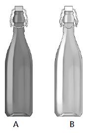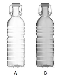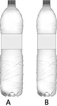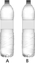 La primera sección del cuestionario se refiere al tamaño de los envases y a la percepción del volumen por parte del consumidor. En el experimento se utilizó una botella de agua mineral de dos litros sin marca. La elección de este envase responde a dos motivos: en primer lugar, se trata de la forma estándar de uso generalizado en la industria y, en segundo lugar, resulta sencilla su modificación sin que pierda su forma. En este caso se trataba de una botella de agua mineral presente en el mercado, sin formas que pudieran identificarse con una marca concreta, a la que se le borró la etiqueta. Sobre la misma fotografía se realizaron retoques digitales para reducir el volumen en dos sentidos: la altura y la anchura. Dicha reducción se realizó en un 5% y en un 10%, respectivamente. En todas las exposiciones la botella A era la original y la B era la modificada (en altura o anchura).