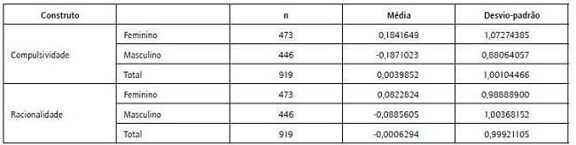 Esse resultado, aparentemente contraditório, que expõe que as mulheres são, ao mesmo tempo, mais racionais e compulsivas do que os homens nos comportamentos de consumo, já foi verificado em estudos prévios (Silva, 2008; Denegri et al., 2011; Denegri et al., 2014), o que sinaliza que as mulheres têm um perfil de consumo ambivalente. Situação que pode ser derivada de uma maior influência de estados emocionais no comportamento de compra feminino, que transformaria pessoas racionais em compulsivas (Denegri et al., 2014).