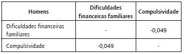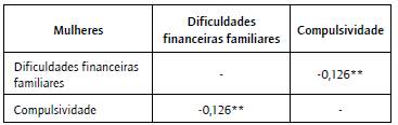 Nesse contexto, foi feito o teste de Spearman, em que se constatou uma correlação estatisticamente significativa e negativa entre o consumo compulsivo e as dificuldades financeiras familiares no público feminino, conforme exposto pela tabela 4. As respondentes que afirmaram passar por dificuldades financeiras mensais em suas residências foram também as que mais pontuaram no fator consumo compulsivo.