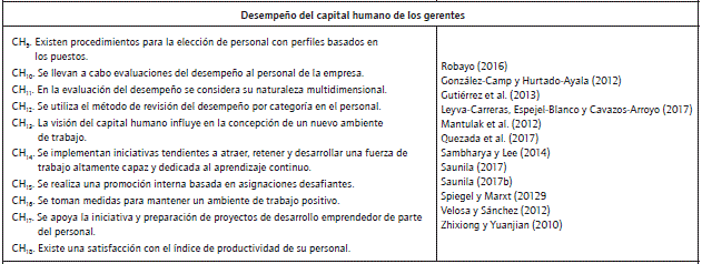 Desempeño del capital humano de los gerentes | 0,949 | 0,957 | 0,712 |