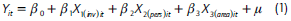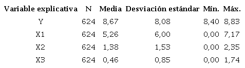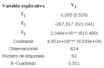 El coeficiente de correlación intraclase Rho reporta 6,4%, de manera que podemos descartar la presencia de heterocedasticidad. De forma paralela, los resultados arrojaron que los modelos restantes configurados a partir de las variables explicativas X1 y X2 presentaban un comportamiento no consistente con los planteamientos iniciales; por lo tanto, no resultaron significativos y muy alejados de los indicadores de análisis (tabla 2).