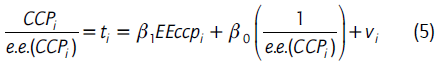 La figura 7 es el gráfico funnel para las 880 estimaciones que componen la muestra, en donde se observan estimadores tanto positivos como negativos con diversos niveles de precisión, lo que denota heterogeneidad en la evidencia recopilada. Se observa que los efectos se concentran en torno a un valor positivo a medida que son más precisos, aunque en promedio los efectos positivos son más precisos que los negativos. A medida que el CCP disminuye, lo hace también su nivel de precisión, aumentando su varianza.