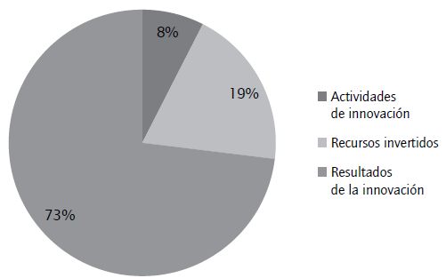 Para describir las conceptualizaciones de la innovación halladas, resultan útiles las primeras dos etapas del modelo CDM (Crepon et al., 1998): inversión en actividades de innovación e intensidad de recursos invertidos (input), por un lado, y resultados del proceso innovador (output), por otro. A partir de esta clasificación se observa que existe cierto consenso en medir la innovación por resultados (figura 4): la empresa declara nuevos productos o procesos, tiene mayores ventas o genera patentes (73%). La poco frecuente medición a través de inputs (27%) es coherente con la lógica de que la innovación es la aplicación comercial de nuevas combinaciones de factores productivos (Schumpeter, 1935)15. Los recursos invertidos ayudan a explicar el éxito entre el desarrollo de proyectos de I+D y su concreción, pero no miden la innovación16. Es por esto que la realización de actividades y el presupuesto destinado se vean como las primeras etapas de un proceso, cuyo desenlace exitoso (y eventual impacto sobre la productividad del trabajo) es el verdadero objetivo de investigación de la literatura bajo análisis17.