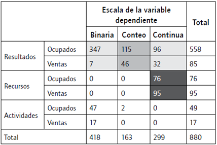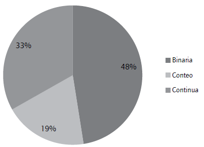 En cuanto a la escala utilizada para medir el DI utilizada en las estimaciones econométricas incluidas en la muestra, se observa en el figura 5 que principalmente se la define como variable binaria (48%), en su mayoría en respuesta a la pregunta de "si la empresa innova o no".
