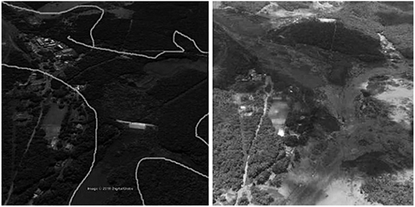 En contraposición, organizaciones no gubernamentales (ONG), como el MAB y Ecologistas en Acción, así como miembros de la sociedad civil, manifestaron que la catástrofe de Brumadinho fue una tragedia anunciada (EJatlas, 2019), incluso después de que el CEO de Vale, Fabio Schvartsman, manifestara en 2017 que lo ocurrido en Mariana no se repetiría nunca más (Serna, 2019). Según estas organizaciones, la infraestructura carecía de condiciones para retener los desechos y, al ser una represa de relaves -en la que el lodo es el material que sujeta-, tenía grandes riesgos, incluso con cambios sutiles como los producidos por un aumento de agua por las lluvias (figuras 3 y 4) (The New York Times, 2019).
