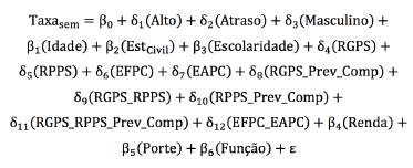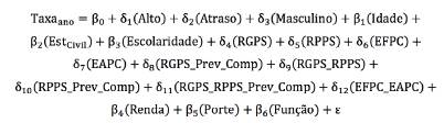RGPS_RPPS_Prev_Comp é uma variável dummy que assume o valor 1 no caso de o indivíduo contribuir concomitantemente para o RCPS, para o RPPS e para entidade aberta e/ou fechada de previdência complementar, e o valor 0 nos demais casos.