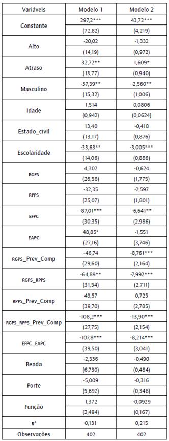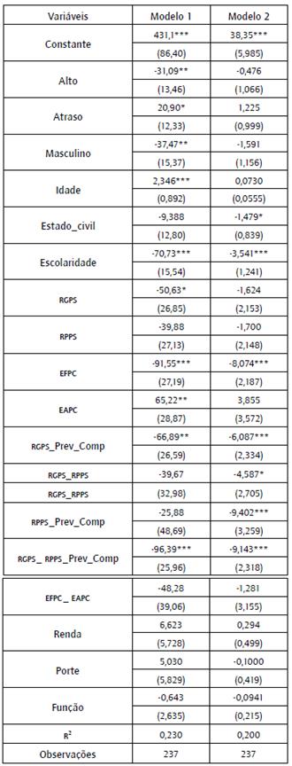 RGPS_RPPS é uma variável dummy que assume o valor 1 no caso de o indivíduo contribuir concomitantemente para o RCPS e para o RPPS, e o valor 0 nos demais casos.