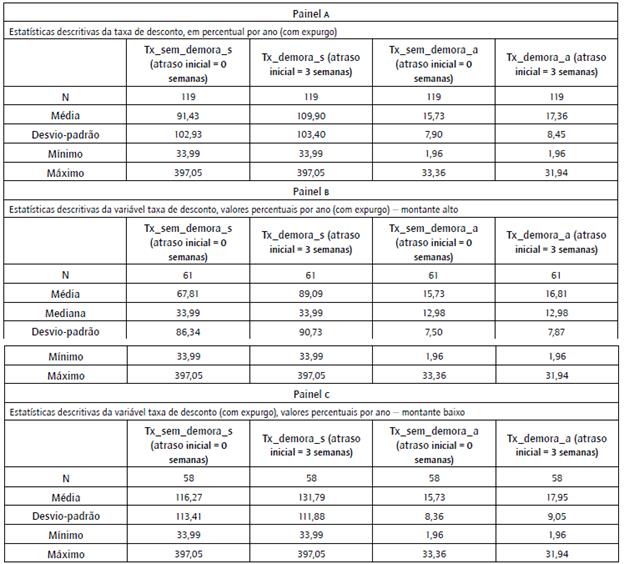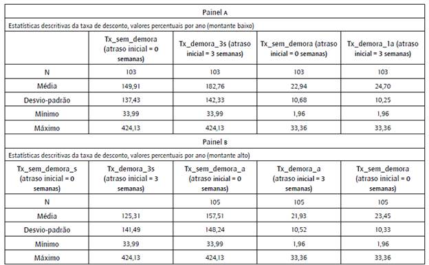 A tabela 4 apresenta as estatísticas descritivas para as taxas de desconto calculadas.