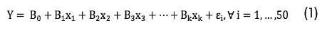 En la ecuación 1, i representa la unidad de análisis de la empresa para un conjunto de N=50 e i=1...50 observaciones muestrales transversales para cada una de las variables endógenas y exógenas. Así pues, se puede escribir el modelo como sigue: