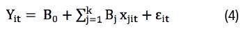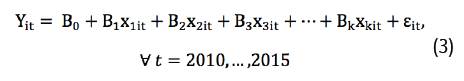Ahora, se debe considerar el modelo propuesto en la ecuación 2 para unidad temporal t, por lo que el modelo en estructura de datos panel queda planteado de la siguiente forma: