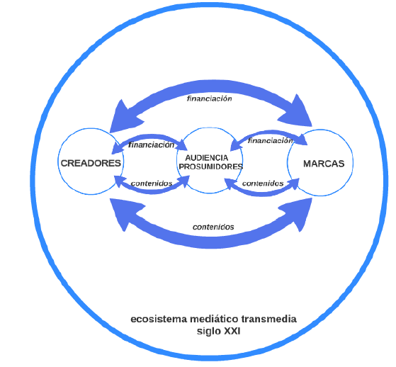 En el siglo XXI el usuario tiene la posibilidad de crear y compartir situándose en una posición central dentro de la creación y el consumo de contenido. Todos los actores del sistema comunicativo (medios, marcas, audiencia y creadores) tienen la capacidad de crear y financiar proyectos. Los medios siguen estando presentes en el proceso pero la frontera entre la comunicación mediatizada y la comunicación interpersonal se ha hecho permeable y por tanto cada vez es más complicado delimitar las ventanas de distribución de un proyecto.