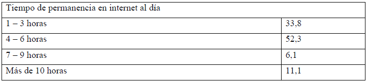 También fueron obtenidos datos interesantes al comparar las respuestas de los encuestados que usan el internet con la frecuencia diferente y le dedican una cantidad de tiempo distinta (Tabla 5).