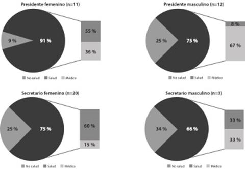 Del total de integrantes caracterizados, 85 fueron mujeres (51 %), de las cuales 61 (72 %) eran médicas o pertenecientes a áreas de la salud, mientras que 24 miembros eran mujeres que no eran médicas ni trabajaban en áreas de la salud (28 %); de este grupo, 11 se identificaron como representantes de la comunidad (13 %).