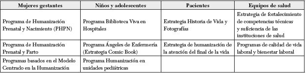 A continuación, se presentan resultados relacionados con la implementación de políticas, programas o estrategias de humanización en salud con diferentes poblaciones.