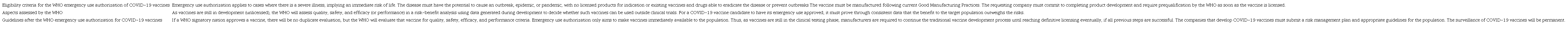 Thus, the WHO emergency use authorization for COVID-19 vaccines is a risk-based procedure that assesses vaccine candidates to allow both United Nations agencies and their member countries to purchase vaccines previously approved by the WHO on criteria related to safety, quality, performance, and efficacy. 17,18