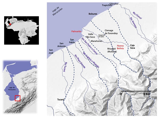 Aunque el sur del lago de Maracaibo (Venezuela) está conformado por doce valles, el presente estudio se centra en los de San Pedro, Bobures y Torondoy, irrigados por los ríos Torondoy, Castro o San Pedro y Mojaján o Culebra2. Estos valles se caracterizan por su extraordinaria productividad agrícola, debido a sus excepcionales condiciones de fertilidad y humedad, las cuales fueron aprovechadas por los hispano-criollos para desarrollar las haciendas productoras de cacao y otros cultivos de subsistencia, como lo describían los ediles de Maracaibo en 1716: