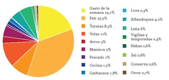 Una de las características interesantes de la contabilidad de los dominicos es la marcada relación existente entre las festividades religiosas y el tipo de alimentos comprados para la comunidad educativa. Por ejemplo, cada año, en la época de Semana Santa incrementaba el gasto en pescado (AGN, SAA-III, RH-C, 1254c, ff. 98 r.- 175 r.). Al mismo tiempo, se puede observar en los libros de contabilidad un descenso en el consumo de carnes rojas (jamón, lomo, costillas de cerdo, cecina).