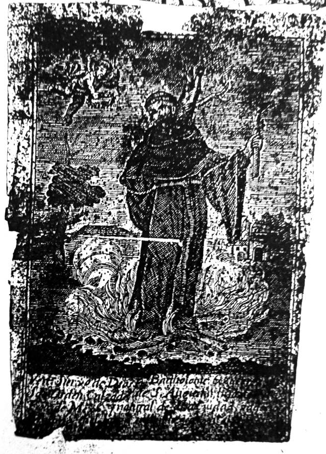 Estos testimonios podrían estar ligados a las estampas, imágenes que soportaban, de una u otra manera, algunos de los pensamientos de Juan Nepomuceno. Por ejemplo, la imagen en llamas y el martirio de fray Bartolomé Gutiérrez ejemplifican lo que él deseaba: morir quemado en tierras lejanas. Este panorama permite intuir que el reo enfocó sus súplicas en seguir el ejemplo ilustrado en la estampa, aunque sus acciones se encontraban en el lado opuesto o no eran cercanas a la búsqueda de la santidad. Otro aspecto interesante es que adoptó la devoción por un mártir criollo que aún no había sido beatificado por Roma, pero que gozaba de cierta notoriedad en la Nueva España23; es decir, una santidad local (Rubial, “Imprenta” 51). Parte de los testimonios que Juan Nepomuceno construyó estaban relacionados con Oriente y dicho fraile encajaba muy bien en este discurso. En el caso de fray Bartolomé, el cuerpo no pudo ser usado como reliquia. Todo fueron cenizas. Tal vez Juan quería ser quemado, al igual que el religioso, y así su cuerpo esclavizado no se quedaría en la Nueva España. Serían cenizas que podrían regresar a su tierra.